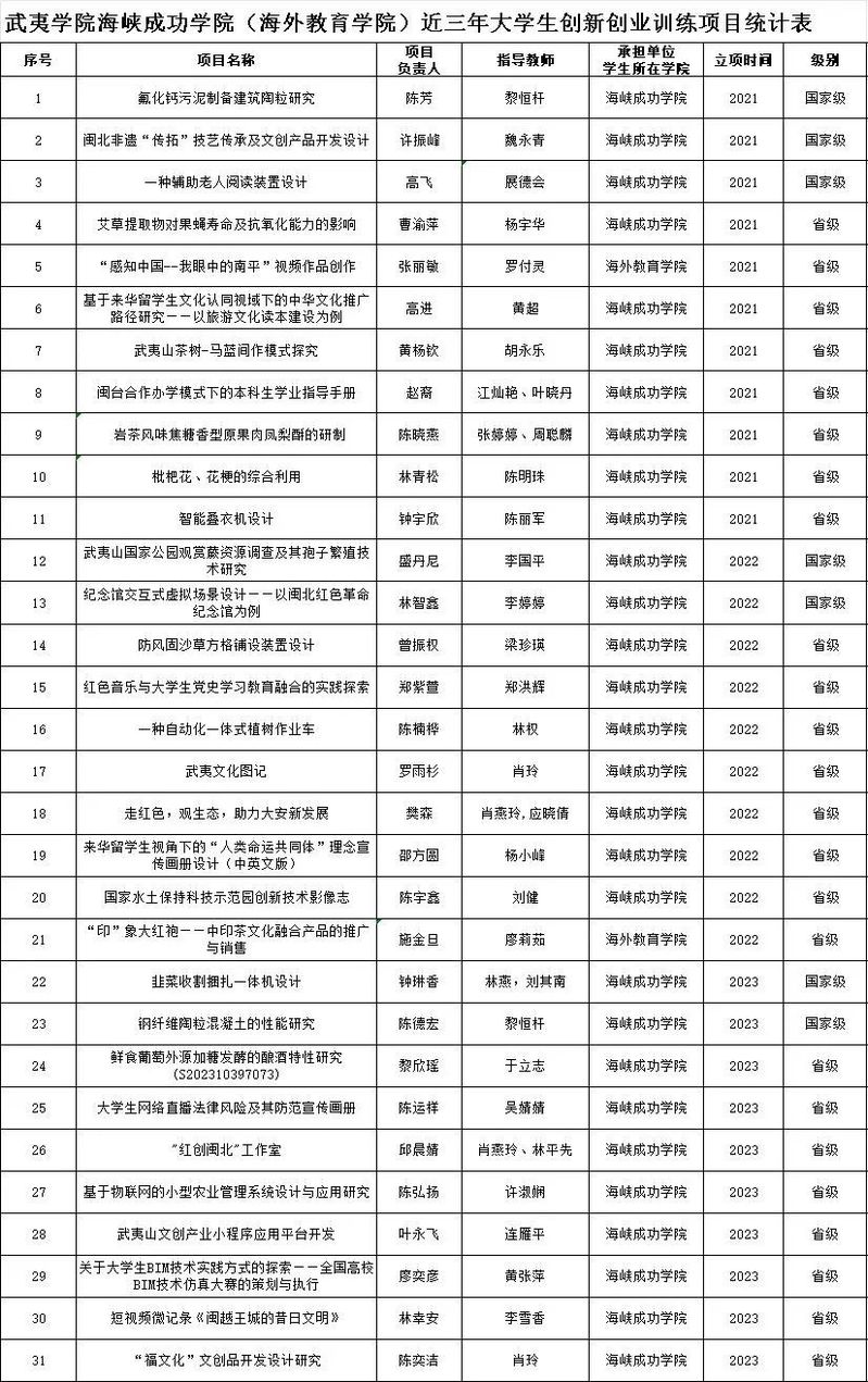 近三年大学生创新创业训练项目统计表