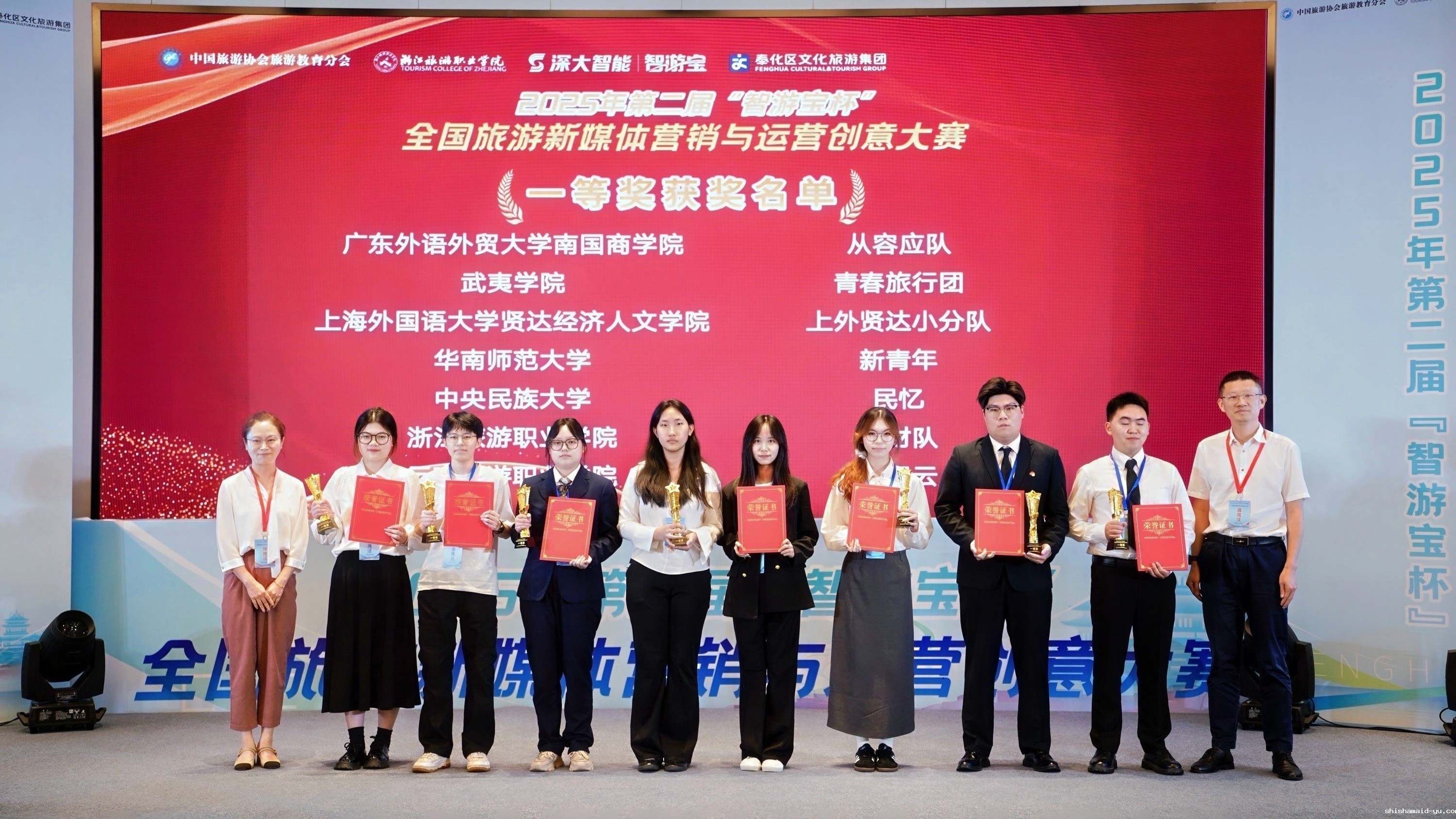 6月7日,由中国旅游协会旅游教育分会主办,以“文旅融合新视角,新媒体创享精彩旅程”为主题的2025年第二届“智游宝杯”全国旅游新媒体营销与运营创意大赛决赛在浙江省宁波市溪口镇举行。
