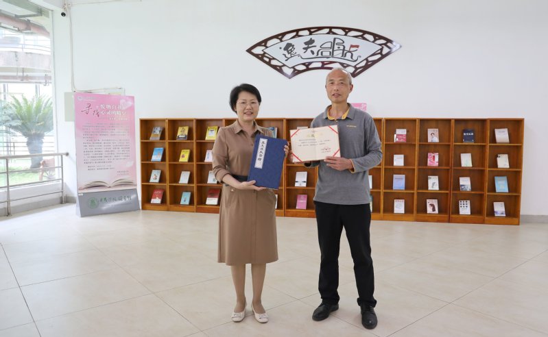 在捐赠仪式上,陈志宏馆长对张兆德先生捐赠图书义举表示感谢并向其颁发收藏证书。