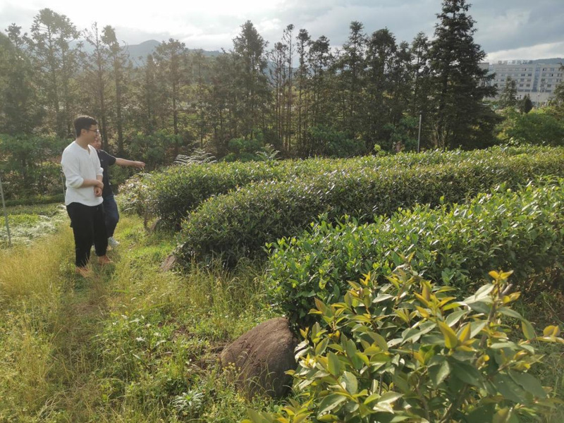 4月11日,中国科学院东北地理与农业生态研究所郗延彪博士在程仁贵教授的陪同下参观taptap点点手机网页武夷岩茶种质资源圃。