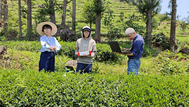 5月17日上午,智能感知与数字孪生团队师生联合中国科学院东北地理与农业生态研究所张蓉老师和冯志军博士在武夷山市洋庄乡四渡村万峰寺利用无人机、高光谱相机、叶绿素仪采集茶园数据。