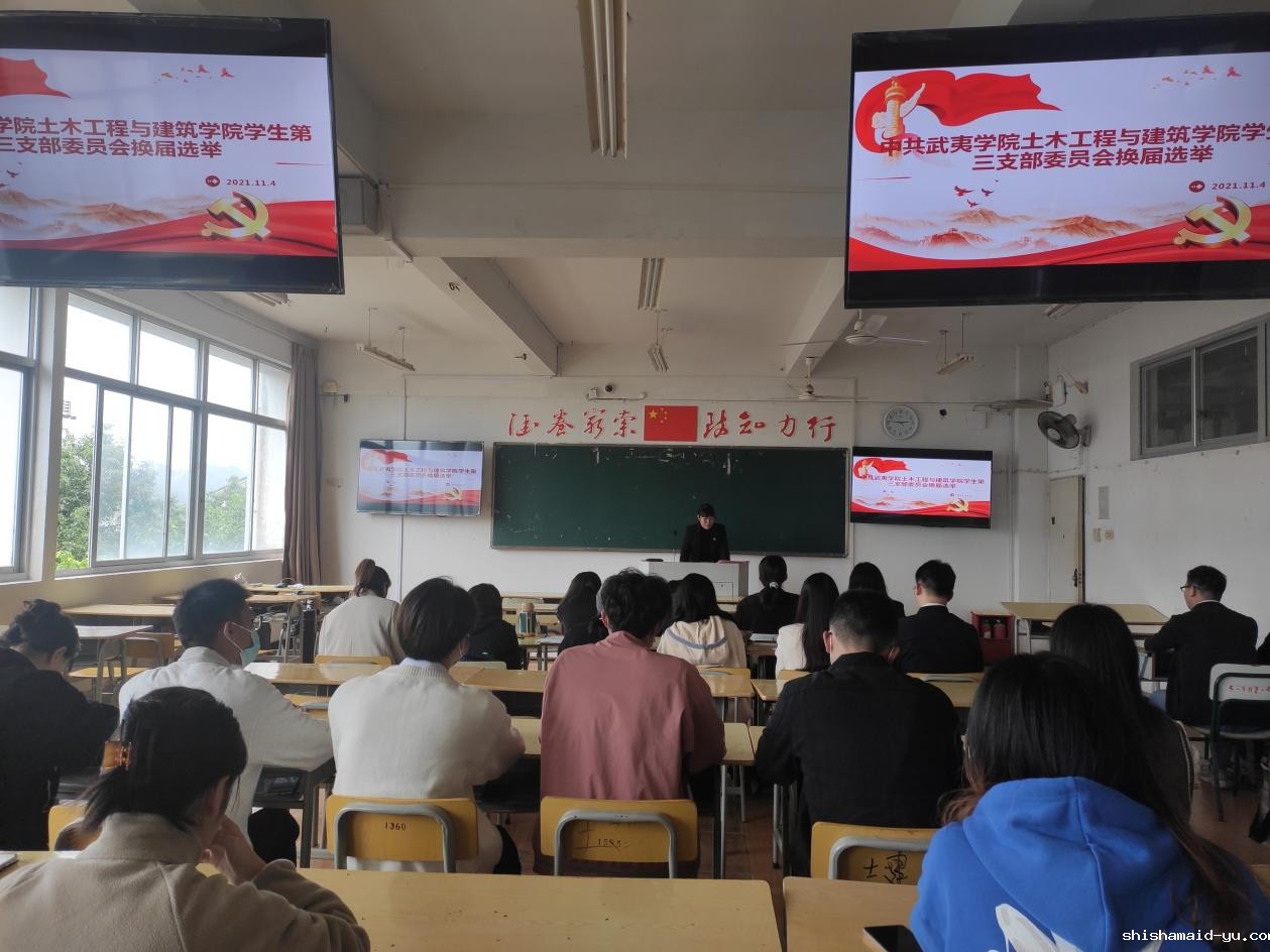 2021年11月4日下午14:30,第三党支部在瑞樟7-301教室举行党支部换届选举工作会议,此次会议由党支部书记雷翠丽同志主持。支部全体党员参会。