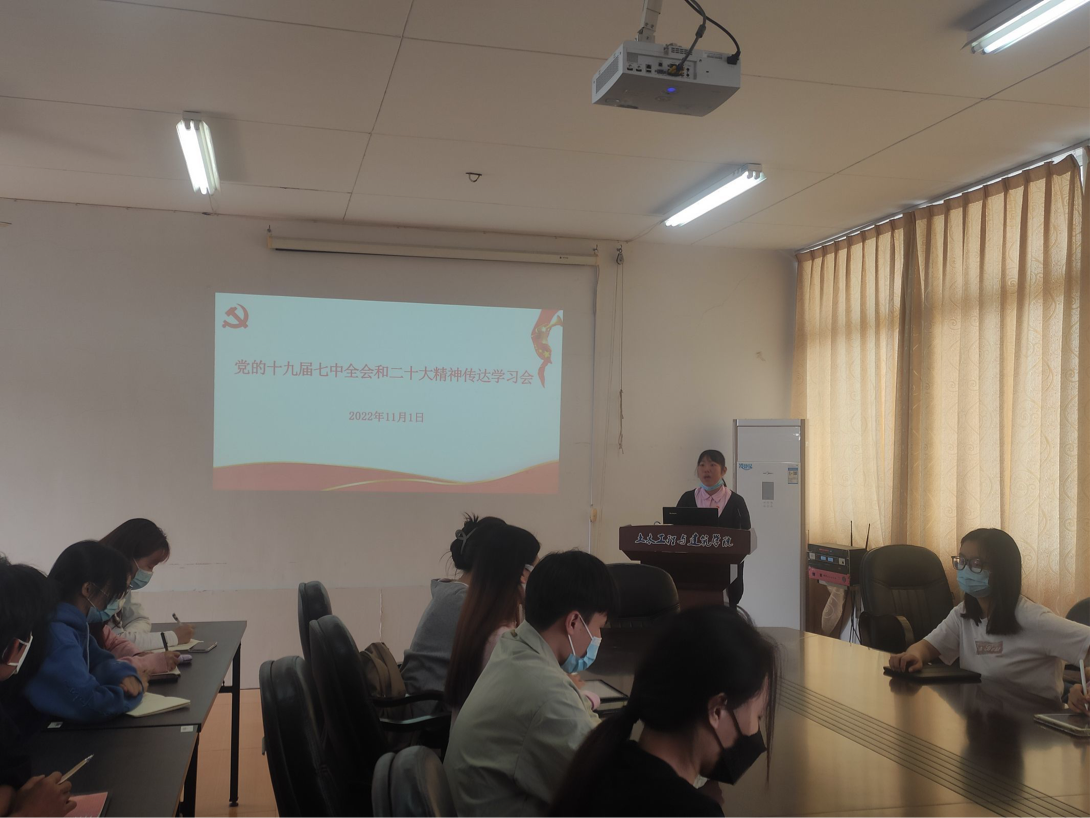为深入学习贯彻党的二十大精神,2022年11月01日上午,学生第三党支部在瑞樟7-506会议室开展专题学习。会议由党支部书记雷翠丽同志主持,全体党员参与学习。