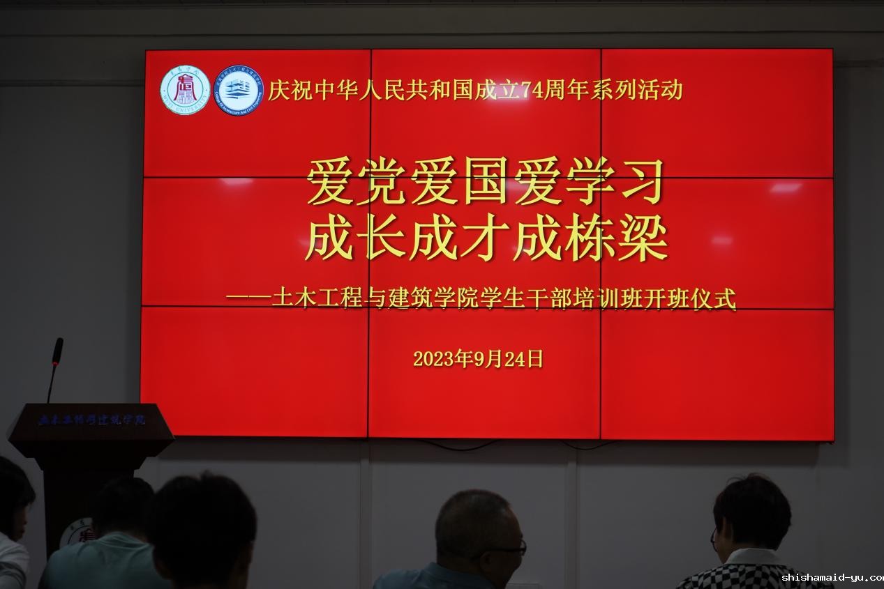 2023年9月24日,土木工程与建筑学院在瑞樟七号教学楼101报告厅举行学生干部培训班开班仪式。院党委书记兰四清、党委副书记牟娟、全体辅导员参加活动。