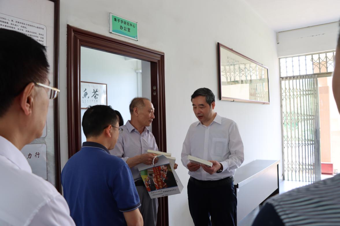 2022年6月8日,省委宣传部副部长叶雄彪、省委宣传部舆情信息处处长苏生财、省委宣传部舆情信息处干部黄晋华、省委宣传部舆情信息处干部郑加财、市委宣传部常务副部长张文高、市委网信办副主任余高伟、市委宣传部文化发展改革科副科长张强一行人到taptap点点手机网页指导工作,taptap点点手机网页党委书记庄祥生、taptap点点手机网页党委副书记陈金瑞、taptap点点手机网页党委宣传部部长唐超陪同下参观考察了我校朱子学研究中心和新建朱子书院。